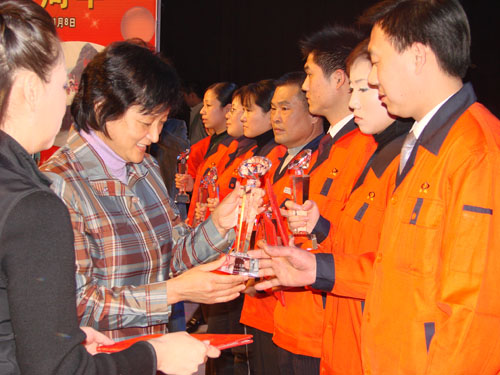 濟(jì)寧市政協(xié)副主席?;萏m女士到場(chǎng)為我公司“十年貢獻(xiàn)”一等獎(jiǎng)獲得者頒獎(jiǎng)